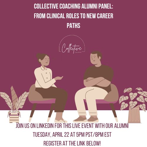 Rewatch our special LinkedIn Live event featuring alumni from the Collective Coaching program who have successfully made the leap from clinical care to exciting non-clinical roles in health tech, education, consulting, customer success, and more.